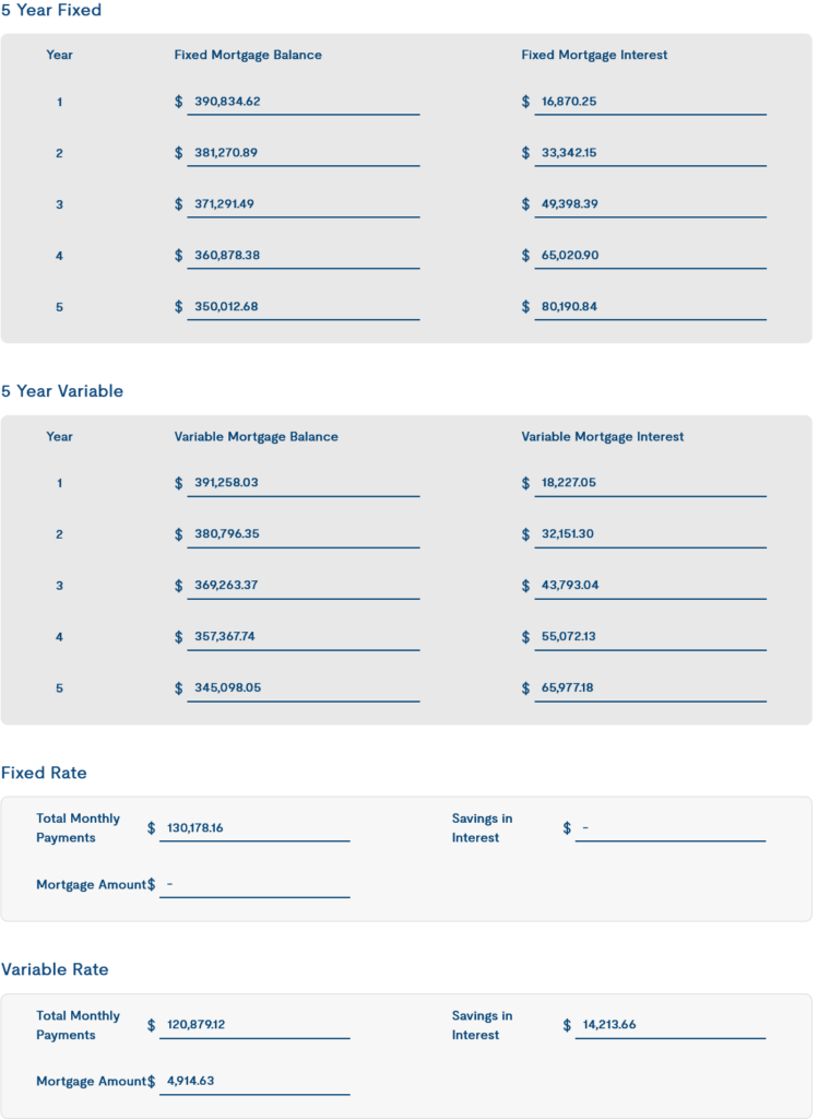 3rd year you are saving a little over $6,633 between principal paydown and interest if you went with a variable mortgage.